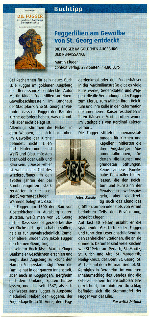 Fuggerlilien am Gewölbe von St. Georg entdeckt
