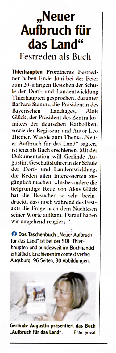 SDL Thierhaupten gibt Reden zum 20-jährigen Bestehen als Taschenbuch heraus, myheimat.de 27.08.2012